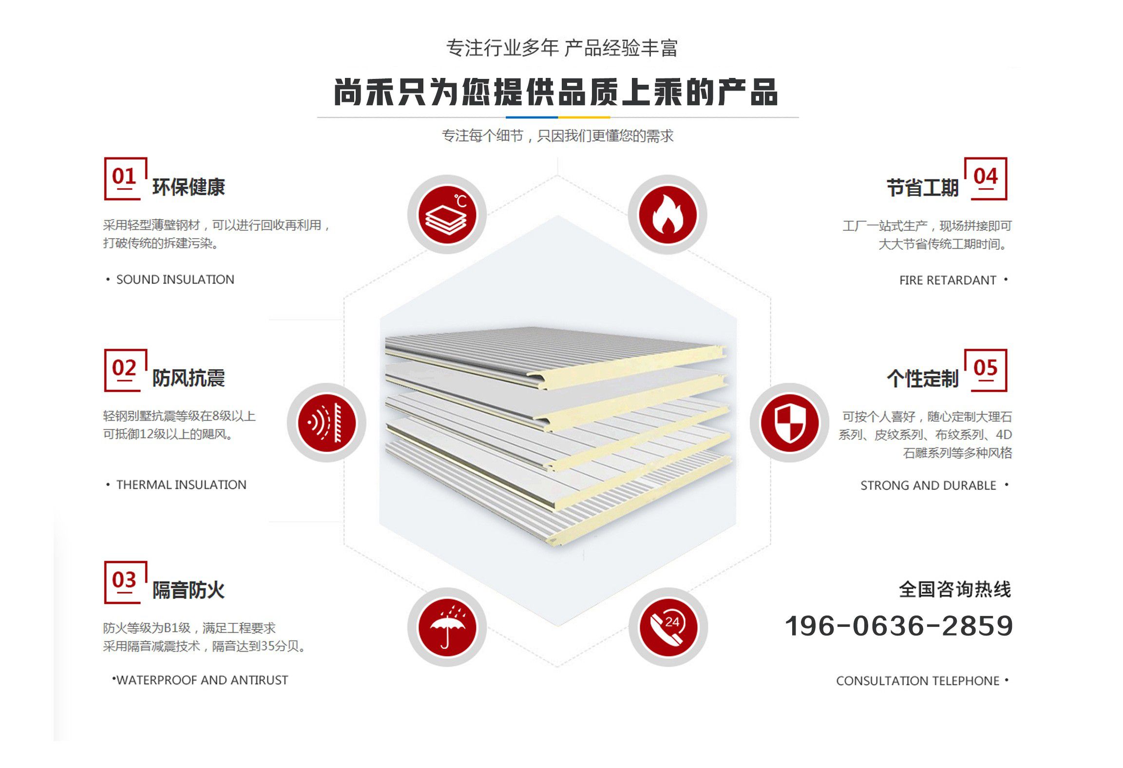 山東尚禾經貿有限公司是集板材設計、研發、生產、施工、一體化的科技公司,并在同行業中率先通過了質量、環境、安全管理體系認證。公司2011年投入資金2000余萬元引進世界先進的聚氨酯節能板連續生產線、意大利進口發泡系統,采用六組份在線自動操作混合澆注技術,在線一次性完成社會配料中心或工廠的配比混合工藝,并可以根據溫度在線自動調整,從而生產處與眾不同的高強度、節能型、綠色環保的聚氨酯夾芯板。(其使用年限高于同行業其他品牌5-10年) 公司主要經營范圍包括聚氨酯夾芯板,PU夾芯板,冷庫板,潔凈板,聚氨酯冷庫板,冷庫保溫板的設計、生產、銷售、技術指導、安裝及一體、以及進出口業務,是中部六省最大的綠色節能建材生產基地。聚氨酯夾芯板年產200萬平方米、PU夾芯板、冷庫保溫板500萬平方米、鏈整產業綜合實力,開創了六省至中西部創新型中小名企總部基地,并將著力推進中國中西部地區集成房屋住宅產業化發展進程?! 】萍紕撔隆⒐澞艿浞丁Gf間始終秉承“誠信、合作”的企業文化精髓,長期致力于鋼板材結構節能建筑產業,愿與社會各界攜手合作,共鑄綠色、環保美好未來。 產品具有良好的絕熱、阻燃、隔音、環保、耐久性能,可廣泛應用于工業、商用建筑內外墻、以及民用建筑外墻保溫、空調通風系統、專用防火保溫門等領域。 我們始終秉承...